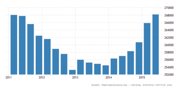 Figure 4 - U du PIB espagnol en 2011-2015 (données trimestrielles nettes d'inflation)