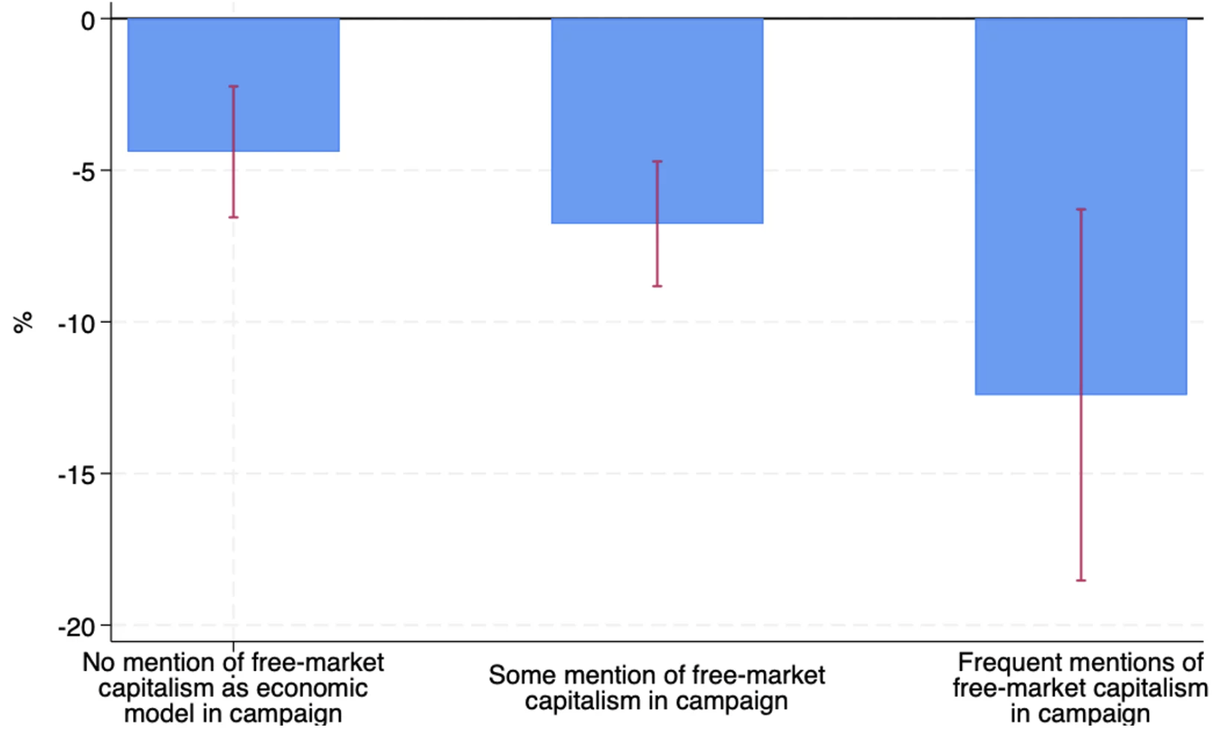 Figure 2. Variation de la part de voix du principal parti au pouvoir après un programme d’assainissement basé sur les dépenses représentant 1% du PIB