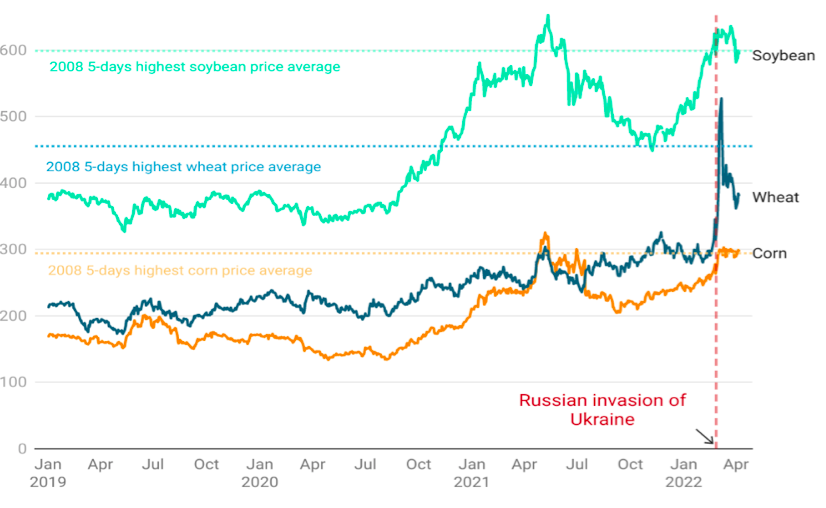 Depuis l’agression russe du 24 février 2022, l’Ukraine est en guerre. Une grande partie de la population est affectée à la défense du territoire, une autre a migré vers l’ouest du pays ou vers des pays frontaliers. En plus des pertes de force de travail, des récoltes ont été détruites, mais aussi des infrastructures permettant le transport des produits agricoles. Le transport maritime dans la mer Noire est significativement perturbé, notamment les transports de céréales en provenance d’Ukraine. En réponse à cette agression, des sanctions internationales contre la Russie et la Biélorussie, soutien de la Russie, ont été prises.