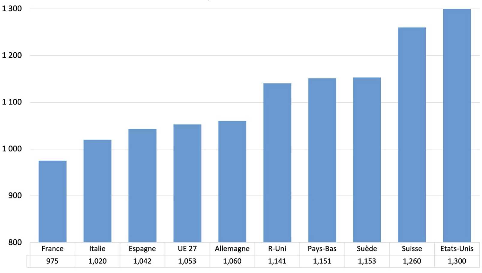 Les statistiques collectées par l’OCDE permettent de calculer le nombre moyen d’heures travaillées annuellement rapporté au nombre de résidents âgés 15 à 64 ans, un segment considéré comme la population en âge de travailler dans les comparaisons internationales. Pour les cinq dernières années connues (2018 à 2022) et pour prendre quelques exemples, le nombre d’heures moyen annuel par personne en âge de travailler était de 975 pour la France, contre 1020 pour l’Italie, 1060 pour l’Allemagne, 1153 pour la Suède et 1260 pour la Suisse.