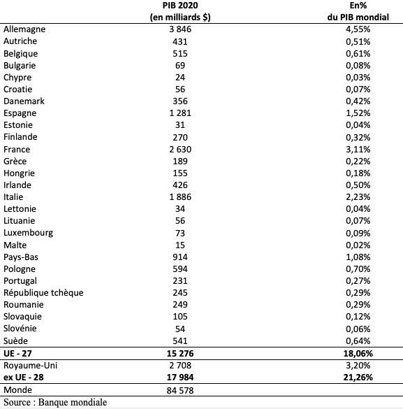 Tableau 2. Le PIB européen rapporté au PIB mondial