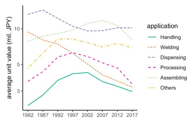 Figure 2. Valeur unitaire moyenne des robots par type d’application industrielle