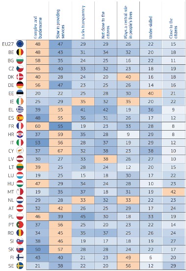 On ne trouve pas d’étude similaire qui estime la charge pour les ménages, mais un sondage récent[2] comparant le nombre de contacts avec l’administration confirme que la France est le pays qui demande le plus d’interactions. C’est aussi le pays qui est jugé le plus bureaucratique d’Europe.