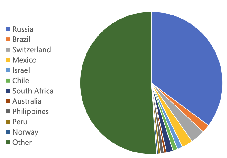 Figure 2. Pays détenant du renminbi chinois dans leurs réserves (en part du total des avoirs en RMB, fin 2022)