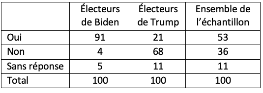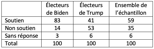 Tableau 2. Jugements sur les politiques menées par Trump et Biden selon l’intention de vote présidentiel