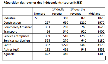 Pour effectuer un chiffrage fin, il est nécessaire de disposer de la répartition des revenus des indépendants.