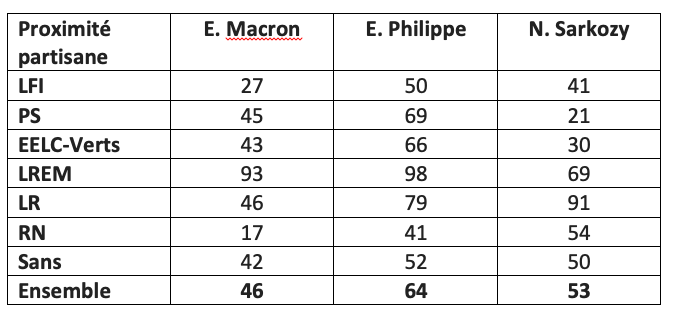 Ce tableau montre en effet quatre éléments importants : L’ancien président est l’une des personnalités politiques les plus populaires (53%). Il est unanimement apprécié par les sympathisants de LR et l’est largement par les sympathisants de LREM et du RN. Il est plus populaire qu’Emmanuel Macron. Il ne fait pas de doute qu’en cas d’affaiblissement du président ou de Marine le Pen, il pourrait accéder au second tour de l’élection présidentielle et aurait alors des chances sérieuses d’être élu.