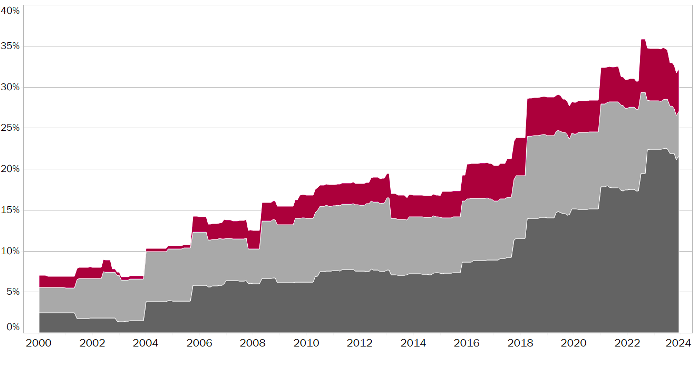 Source : ParlGov ParlGov , The PopuList et calculs personnels. Note : La taille des parlements est normalisée entre les pays et pondérée en fonction de la taille de la population, ainsi qu'ajustée en fonction des adhésions à l'UE. Les dernières observations portent sur décembre 2023. Les partis populistes, tels que définis par The PopuList (2023), sont définis comme des « partis qui soutiennent l'ensemble des idées selon lesquelles la société est en fin de compte séparée en deux groupes homogènes et antagonistes, "le peuple pur” contre “l'élite corrompue”, et qui soutiennent que la politique devrait être l'expression de la volonté générale du peuple ».