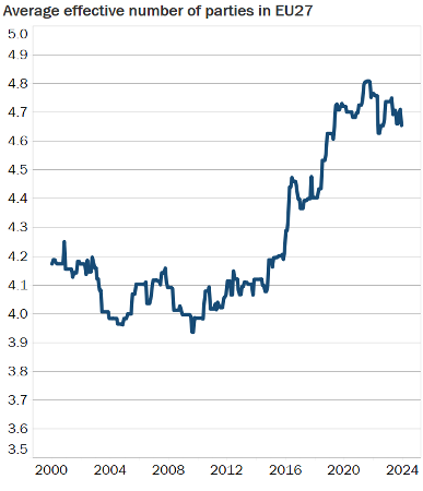 La montée des partis populistes a profondément transformé le paysage politique européen et entraîné une fragmentation politique croissante. Au niveau national, la fragmentation a augmenté de manière significative depuis le début des années 2000 et en particulier au cours de la dernière décennie.