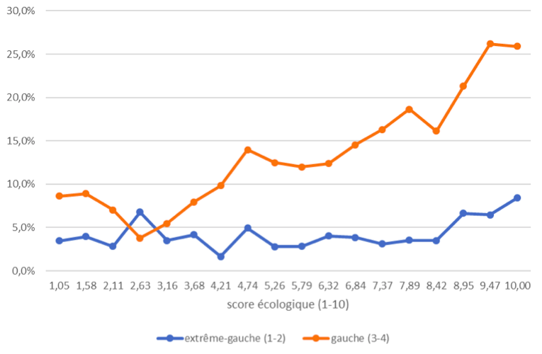 Figure 1. Positionnement politique à gauche en fonction de la force des convictions écologiques