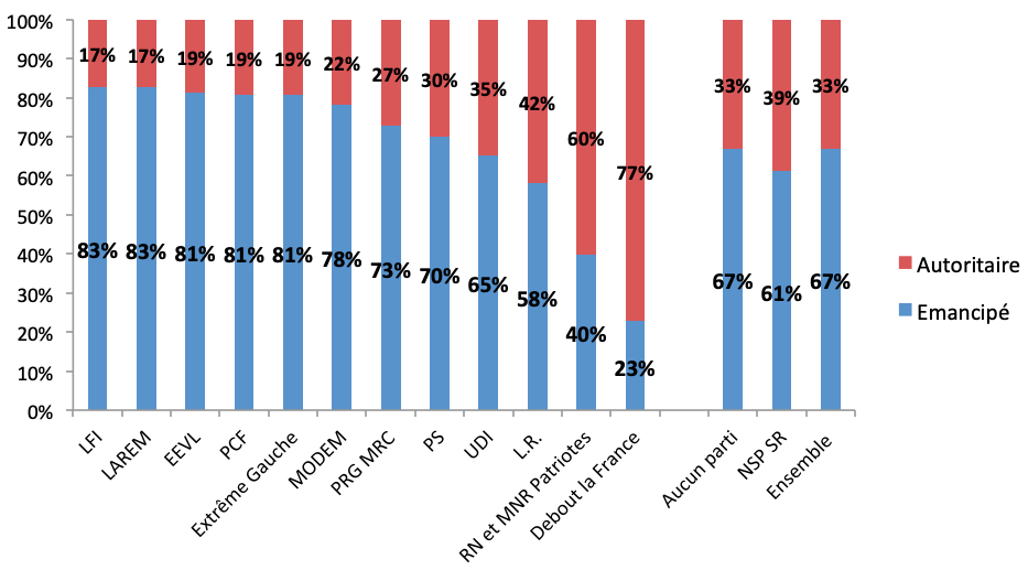 Graphique 2 – Pourcentage d’autoritaires et d’émancipés en fonction de la proximité partisane