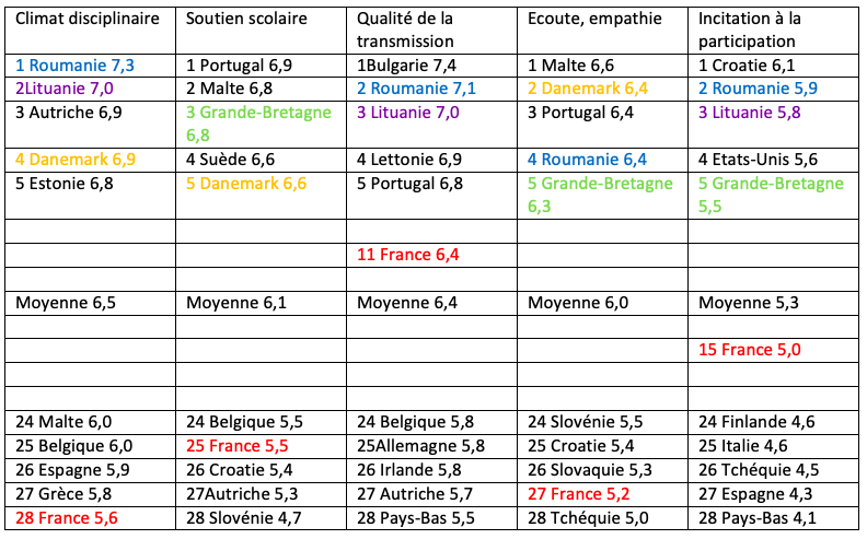 Qualité des relations élèves-professeurs: la France en queue de peloton.