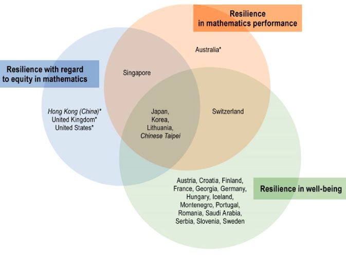La France n’appartient à un système éducatif résilient que dans un seul domaine, celui du bien-être, mais ce n’est le cas ni dans le domaine de la performance, ni dans celui de l’équité (comme on l’a vu précédemment). Les pays asiatiques sont ceux qui cumulent le plus de facteurs de résilience (notamment le Japon, la Corée du Sud et Taïwan). Un seul pays européen, la Lituanie, fait partie de ce groupe.