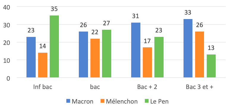 Le match Macron-Mélenchon chez les diplômés