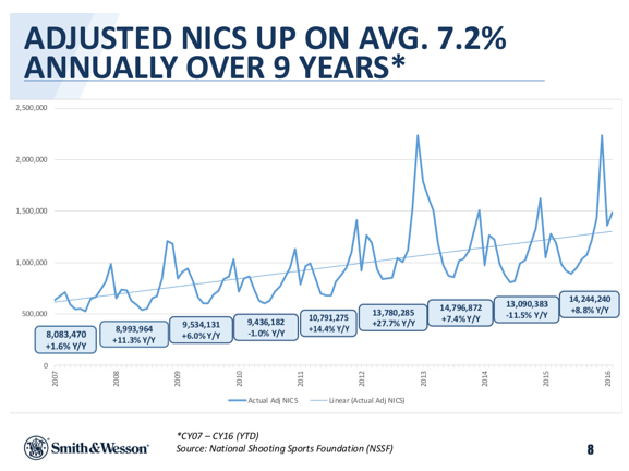 Certains expliquent le succès boursier par la frénésie d’achats d’armes au sortir de chacun de ces tests à chaud, type Sandy Hook ou Orlando ou San Bernardino ou… on ne sait plus quoi citer tant il y en a. L’association Mass Shooting Tracker en fait une carte très éclairante sur son site. C’est aussi ce que montre le graphique ci-dessous, que reporte avec une candeur stupéfiante le site de Smith and Wesson.