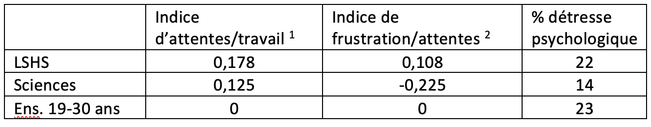Tableau 2. Attentes et frustrations par rapport au travail